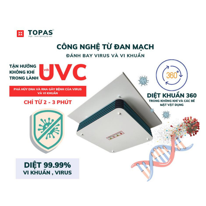 Đèn khử khuẩn không khí điều khiển từ xa- Treo trần TOPAS TP600/600 - upper air/uv